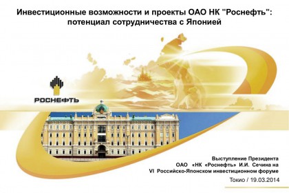 ИНВЕСТИЦИОННЫЕ ВОЗМОЖНОСТИ И ПРОЕКТЫ "РОСНЕФТИ": ПОТЕНЦИАЛ СОТРУДНИЧЕСТВА С ЯПОНИЕЙ