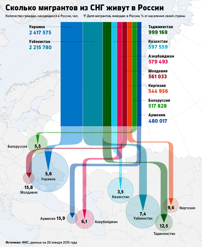 Очевидно, главное требование к массовой иностранной рабочей силе в нашей стране сегодня – знание русского языка. Поэтому все разговоры о миллионах китайцев, которые приедут жить и работать в Россию, следует отложить до тех пор, пока они не выучат как следует русский язык. Следовательно, для реализации реалистичного и высокого прогнозов – при условии, что страны СНГ будут поставлять 80% мигрантов, – количество граждан этих стран, работающих в России, должно увеличиться в 2,5 и 3,2 раза соответственно. Поверить в это тяжело, особенно учитывая, что с Украиной политические отношения испорчены всерьез и надолго.