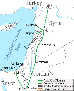 Важно отметить, что почти половина Арабского газопровода проходит по территории Сирии. С 2010 по 2011 гг. импорт египетского газа упал более чем на 60% и был полностью прекращен в 2012 г.