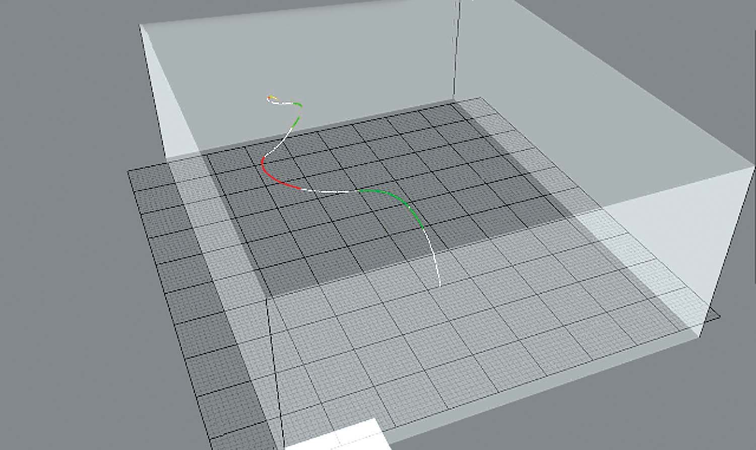 Исследователи в лаборатории Махарбиса помещали жуков–киборгов в специальную испытательную камеру (снимок внизу, стоит Сато). Полет начался (белая линия в правом нижнем углу рисунка справа) со стимуляции оптических долей жука, что запустило «полетное поведение». Электрические импульсы, подававшиеся на правую базалярную мышцу, заставляли жука поворачивать налево, а стимуляция левой базалярной мышцы вызывала поворот направо. Закончился полет (верхний левый угол), когда на оптические доли был подан импульс большей длительности, чем первый.