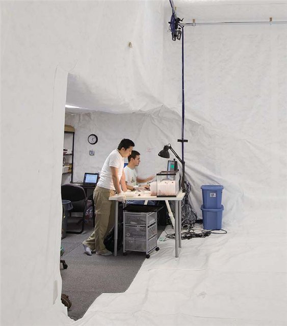 Аппаратура работает превосходно, но нам бы пригодилась помощь в создании программ для управления полетами наших подопытных насекомых. Мы обратились к некоторым своим коллегам, имеющим больший опыт в деле создания программ для полностью искусственных летательных аппаратов. На основе имеющегося опыта работы с беспилотными вертолетами Питер Аббил (Pieter Abbeel) из Калифорнийского университета в Беркли со своими студентами Светославом Колевым (Svetoslav Kolev) и Нимбусом Гехаузеном (Nimbus Goehausen) разрабатывают систему управления, которая будет разбивать сложные команды (например, команду «повернуть на 200 направо») на составляющие (например, «подавать 10–мс импульсы на левую базалярную мышцу в течение стольких–то секунд»). Тогда пользователю достаточно будет вводить некоторые коррекции курса, а задавать стимулы, необходимые для того, чтобы направить жука на требуемый курс, будет микропроцессор. Чтобы выяснить, какими должны быть эти последовательности импульсов, мы использовали магнитно–резонансную томографию, обширные исследования анатомии жуков и высокоскоростную съемку их в полете с целью определения пространственной конфигурации и функций некоторых других мышц, отвечающих за работу каждого крыла. На основе полученных данных мы сегодня нацеливаемся на различные мышцы, чтобы получить возможность более стабильно управлять курсом и креном жука в свободном полете.