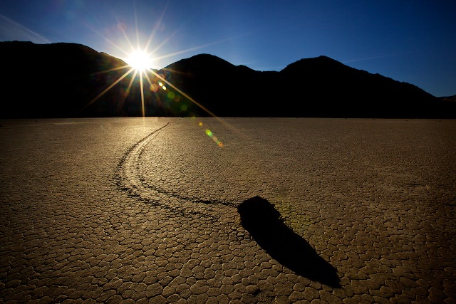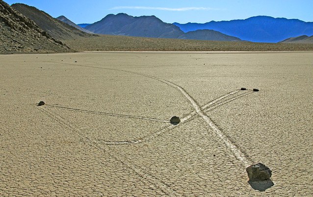 На высохшем озере Рэйстрек-Плайя камни, достигающие веса больше 300 кг, оставляют следы на песке длиной до 250 метров.