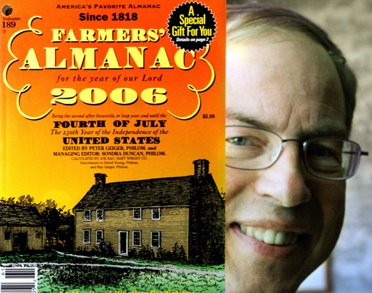 Питер Гейгер, редактор "Альманаха фермеров" с копией последнего издания знаменитого прогноза погоды, 2005 год. Альманах выходил в течение 189 лет, прогноз погоды на год в нем совпадал на 80-85 процентов.