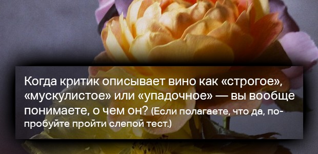 Лучше всего описывают свои обонятельные впечатления те, кто зарабатывают этим на жизнь: винные критики, создатели парфюмов и др. Впрочем, эксперты тоже часто обозначают ароматы через сходные по запаху вещи (возможно, это вчерашнее бордо отдавало графитом, черной смородиной и камфарой). Их описания не всегда понятны простым смертным вроде нас, особенно когда начинает употребляться абстрактная лексика.