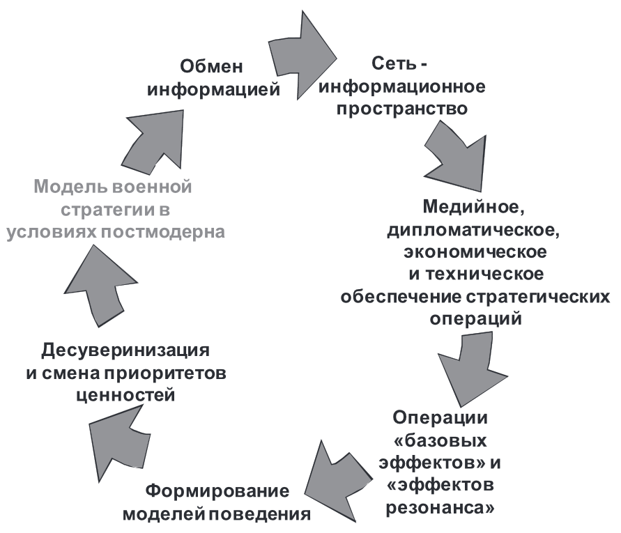 Очевидно, что российские силовые ведомства, спецслужбы и политические институты, концептуально остающиеся в рамках стратегий индустриального общества, мало эффективны в условиях господства постмодернистских сетевых технологий.