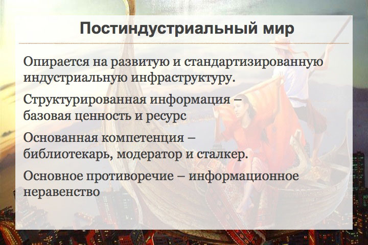 Собственно, вот сейчас мы находимся примерно в такой ситуации представления будущего. Нащупываются другие способы управления будущим, континуальное инсценирование, но это тема достаточно сложная, предмет для отдельной лекции.