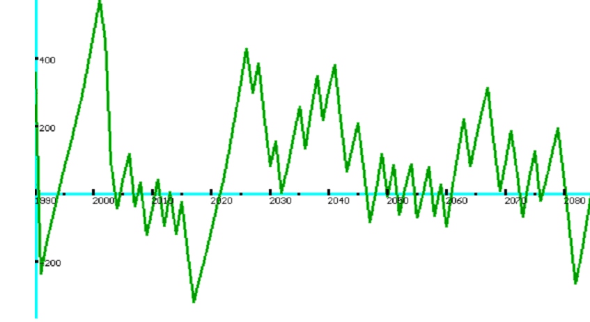 Аналогичный график на период 1990- 2090 годы приведен на рис. 2.