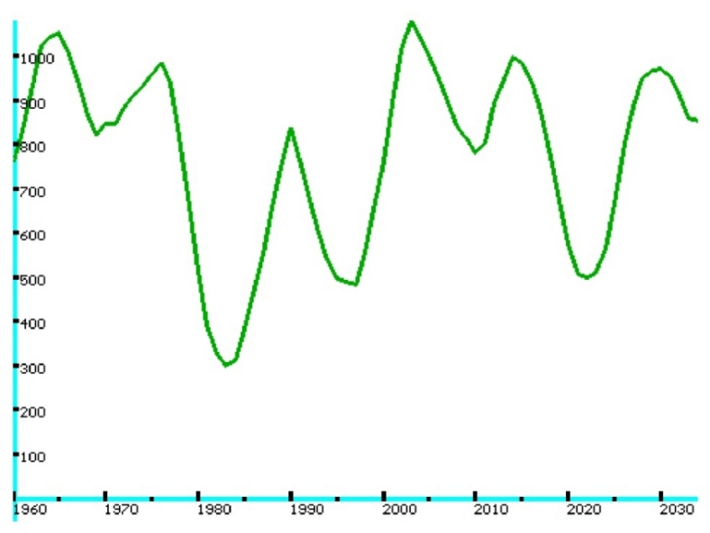 Рис. 3. Экономический график на период с 1960 по 2035 годы.
