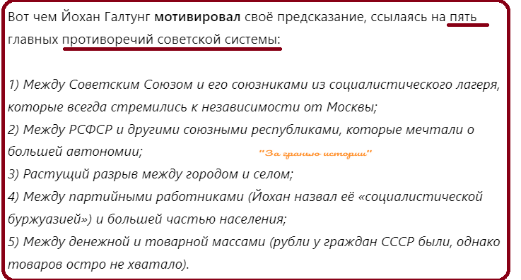 1985 г. Галтунг заявляет, что в течение 7 ближайших лет распадётся Советский Союз.