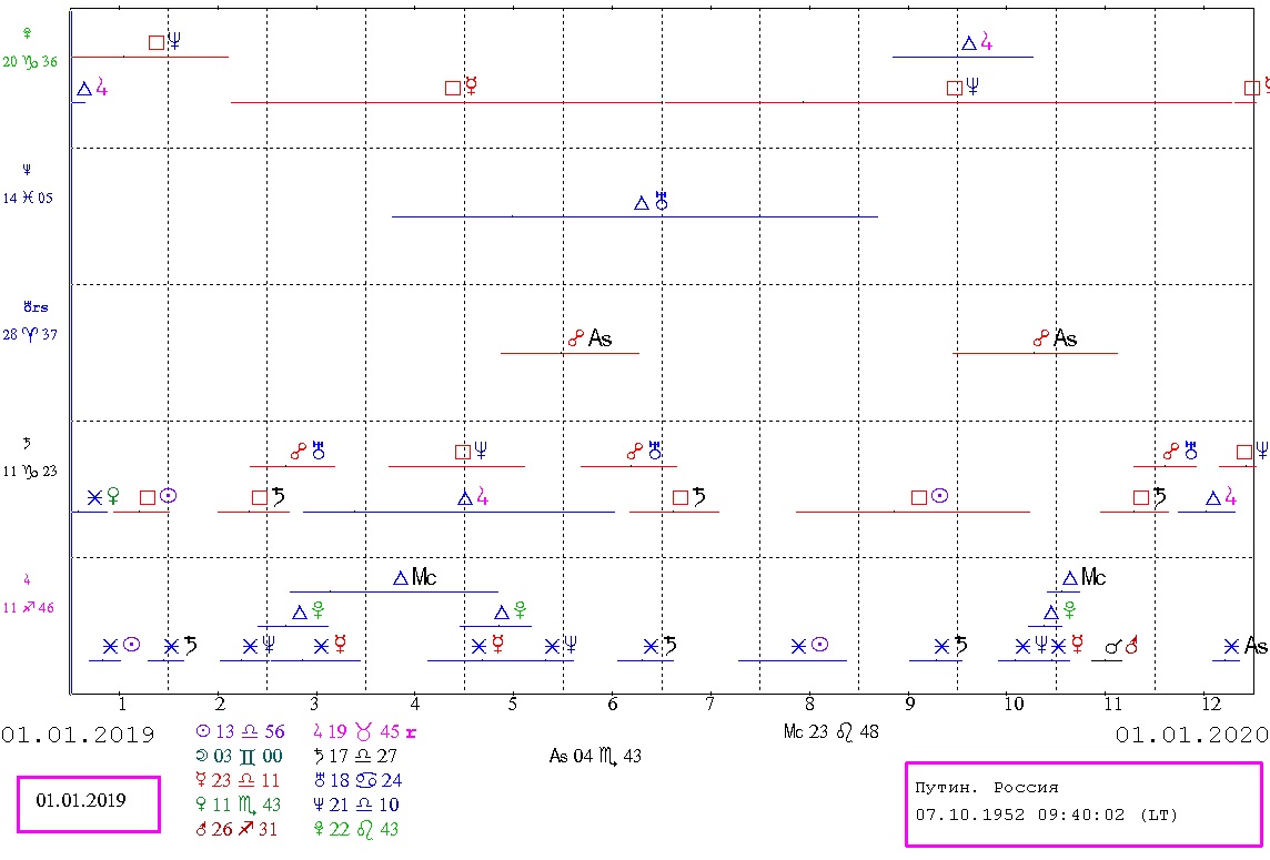 А тот самый главный аспект этого и следующего года (и один из важнейших аспектов нескольких десятилетий вокруг) - соединение Сатурна с Плутоном - как раз происходит в точном (орбис 1 градус) квадрате с Меркурием карты российской власти. А это уже может говорить о том, что главная идея программы нового цикла Сатурн-Плутон в конфликте с мировоззрением и системой коммуникации российского государства образца 2000-2019 годов. Во взаимодействии с этой программой ситуация должна быть реформирована, в противном случае, жесткий конфликт, борьба с высокой вероятностью разрушений, как разрушают энергии цикла Сатурн-Плутон все, что не соответствует направлению эволюционного развития. По крайней мере, такой представляется символика планетарных циклов.