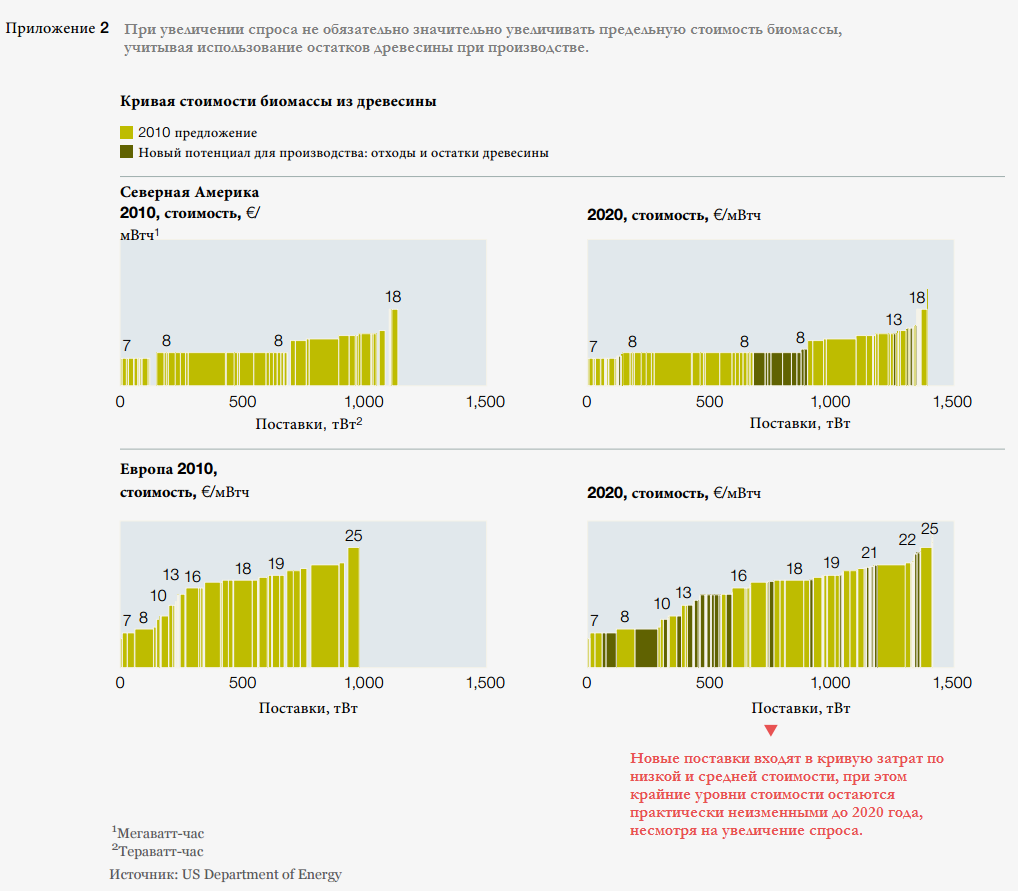 Некоторые поставщики стараются избегать долгосрочных контрактов с фиксацией цен полагая, что повышенный спрос на биомассу может привести к увеличению ее стоимости. Наш анализ показывает, что это не совсем так — повышение спроса не обязательно приводит к увеличению стоимости, если объем поставок будет поддерживаться на высоком уровне (Приложение 2).