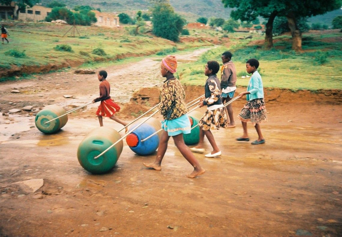 В беднейших районах африканских стран, где жители вынуждены перевозить, а часто и переносить, буквально, на себе, тяжёлые ёмкости с водой, последнее время набирает популярность интересное изобретение — огромный бидон в форме колеса или катка (торговые марки Q Drum, Hippo water roller, Wello WaterWheel). Он вмещает до 90 литров, и его относительно легко катить. Но это, конечно, изобретение что называется со слезами на глазах: проблемы водного дефицита оно не решает, лишь слегка облегчает доставку воды туда, где её не хватает.