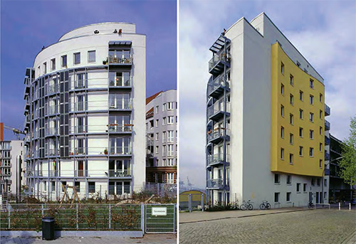 Нас ожидал поход и к другому пассивному дому, который можно считать действительно новым поколением зданий своем классе. Расположен многоквартирный дом в самом центре Франкфурта-на-Майне. Здесь архитекторы уже отказались от множества труб. Заменой прошлым решениям стала общая система для воздушного отопления дома с рекуперацией.