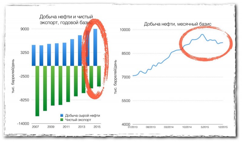 Но нефтяная американская машина так разогналась, что, даже остановившись в росте во второй половине 2015, в общих объемах добычи 2015 года все равно выше 2014 года.
