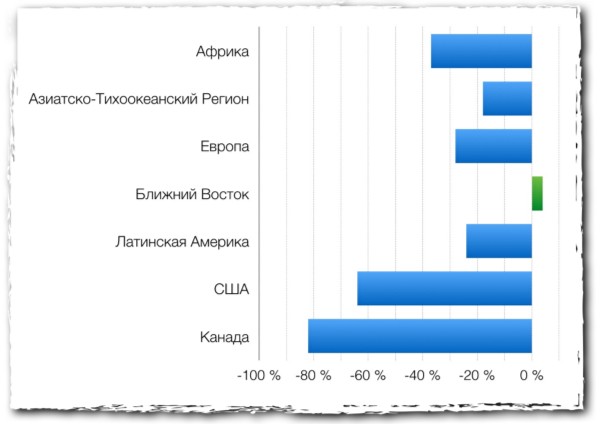 Общий объем бурения по миру всего за год сократился на 30–35%. Лидером сокращения в силу специфики разрабатываемых месторождения из крупных игроков стали США и Канада. Ну а исключением из правил стал регион Ближнего Востока, который за год по объемам работающих буровых установок вырос на 4% — там себестоимость добычи такая низкая, что 50 и даже 35 долларов за баррель почти никого не остановит. И их объемы бурения определяются скорее их собственными решениями по ограничению добычи, нежели себестоимостью.