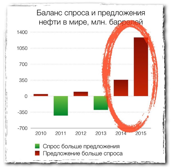 В итоге, призрачные надежды на Саудовскую Аравию, как главного регулятора предложения на рынке, накрылись медным тазом еще в начале 2015 года. Саудовская Аравия стала одним из самых главных факторов роста дисбаланса в сторону избытка предложения.