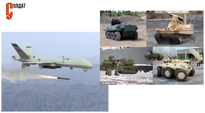 Ясно, что военные с их астрономическими бюджетами в области автоматизации постоянно оказываются впереди всей планеты. Прославились на весь мир американские ударные дроны. Старается не отставать и Россия — об испытании в Сирии машин из роботизированного ударного комплекса «Уран-9» недавно сообщили СМИ. С возможностями комплекса можно ознакомиться в целом ряде видео на YouTube: