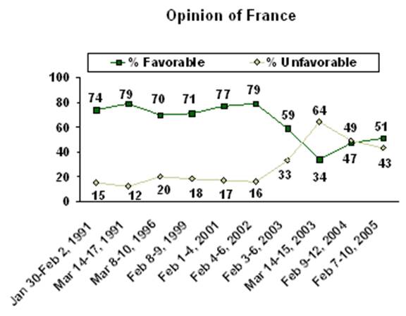 Начнем с частных компаний. На графике (см. рис. 1) показана эволюция восприятия американцами французов. С 2003 г. отмечалось значительное снижение положительных оценок, а на 2008 г. пришелся пик ненависти. Это связано с войной в Ираке. Соединенные Штаты призывали вместе решать проблему ядерного оружия в этой стране. Франция не поддержала позицию США. Американцы обиделись, посчитав французов предателями. В Америке стали распространяться призывы к потребителям не покупать продукцию французских брендов и брендов, принадлежащих французским компаниям. В результате французские компании зарегистрировали падение продаж за полгода на уровне 13%. Хотя компании транснациональны, бренды часто ассоциируются с национальностью. Если бренд что-то теряет, то компании, соответственно, теряют продажи (например, в результате определенной внешней политики). В видеорекламе Volkswagen Das Auto частица Das показывает, что автомобили производятся в Германии. Для любой компании, работающей в конкурирующих странах, важно, чтобы бренд способствовал продажам.