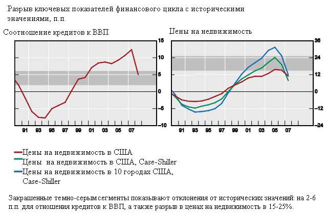 - Кризис можно предсказать. Современная теория финансовых циклов позволяет обнаружить признаки кризиса в будущем. Причем риски можно определить довольно точно и в реальном времени. Самый четкий ориентир - это одновременное позитивное отклонение показателя кредита к ВВП и цен на активы, особенно недвижимость, от исторических норм. Вместе эти два отклонения дают четкий сигнал - пик близок, вот-вот начнется кризис.
