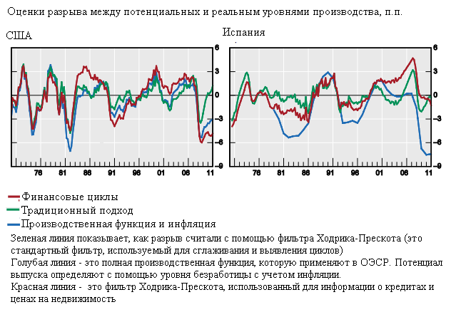 - Бюджетная политика должна быть как можно более скромной, ведь во время бума обычно прогнозы по росту экономики и доходов переоцениваются. Так, до кризиса бюджеты Испании и Ирландии казались вполне надежными: уровень госдолга к ВВП был относительно низким, а сам бюджет - профицитным. Но правительство не учли возможного кризиса (а кто учел?) и связанных с ним проблем банковского сектора, что загнало их в долговую ловушку. Если бы риски финансовых циклов были учтены, то правительствам не пришлось бы брать на себя долги банков, и они не оказались бы в долговом кризисе.