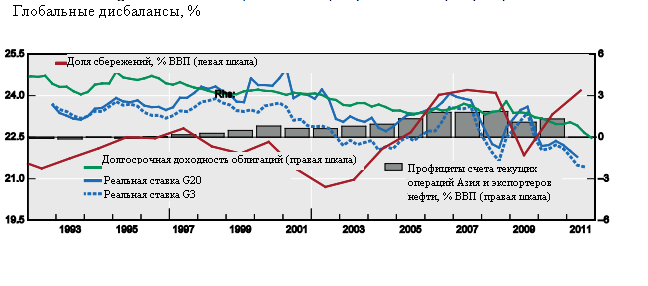 - Сбережений в мире было больше, чем инвестиций. Итогом этого стало давление на процентную ставку - особенно низкой она была по долларовым активам, в которые в основном инвестировались профициты азиатских стран. Инвесторы в поисках большей доходности стали брать на себя излишние риски - это и стало причиной финансового кризиса.