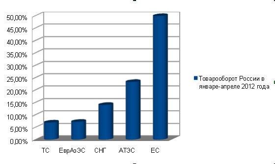 Рис.2. Товарооборот Росии в январе-апреле 2012 г.