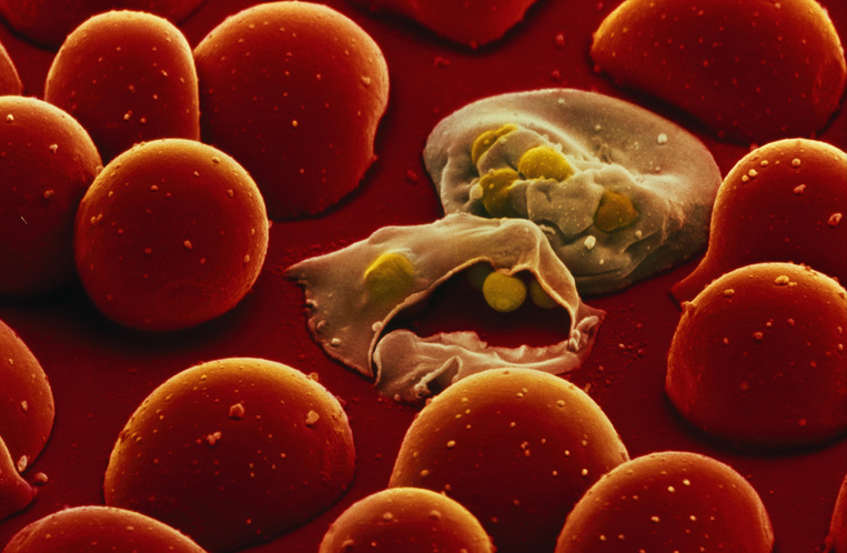 Малярия болезнь крови, которая вызывается малярийным плазмодием, простейшее, попадающее в кровь при укусе комара-переносчика. Сегодня от малярии умирает около 660 000 человек за год. Малярийный плазмодий поникает в эритроциты, после завершения развития паразит выходит из эритроцитов, происходит это как массовое явление. Именно в этот момент человек мучается от лихорадки. Поврежденные эритроциты не могут переносить кислород, в кровь человека также попадают продукты метаболизма малярийного плазмодия и вызывают токсический эффект. Если лечение не проводить. То человек, скорее всего, погибнет.