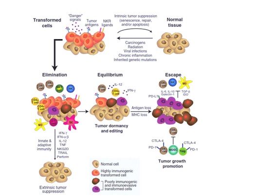На сегодняшний день можно встретить много научных статей, в которых описывается борьба иммунной системы со злокачественными опухолями. Почти такое же количество научного материала описывает негативное влияние присутствия иммунных клеток в опухоли, которые провоцируют ее рост и появлению метастаз. Концепция иммуноредактирования объяснила изменение поведения клеток иммунной системы.
