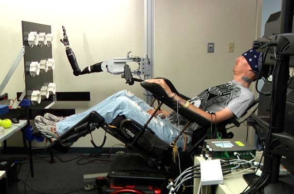 Начинает работать двустороннее, бесконтактное сообщение в реальном времени между нервными клетками и машинами. В недавнем эксперименте обезьяна управляла рукой робота, как если бы это была ее собственная конечность, а перенесший инсульт человек смог работать на компьютере. В этой сфере ключевым аспектом является воспроизведение сложной модели входящих и исходящих сигналов мозга. Это могло бы позволить человеку с параличом всех четырех конечностей управлять компьютером или другими устройствами.