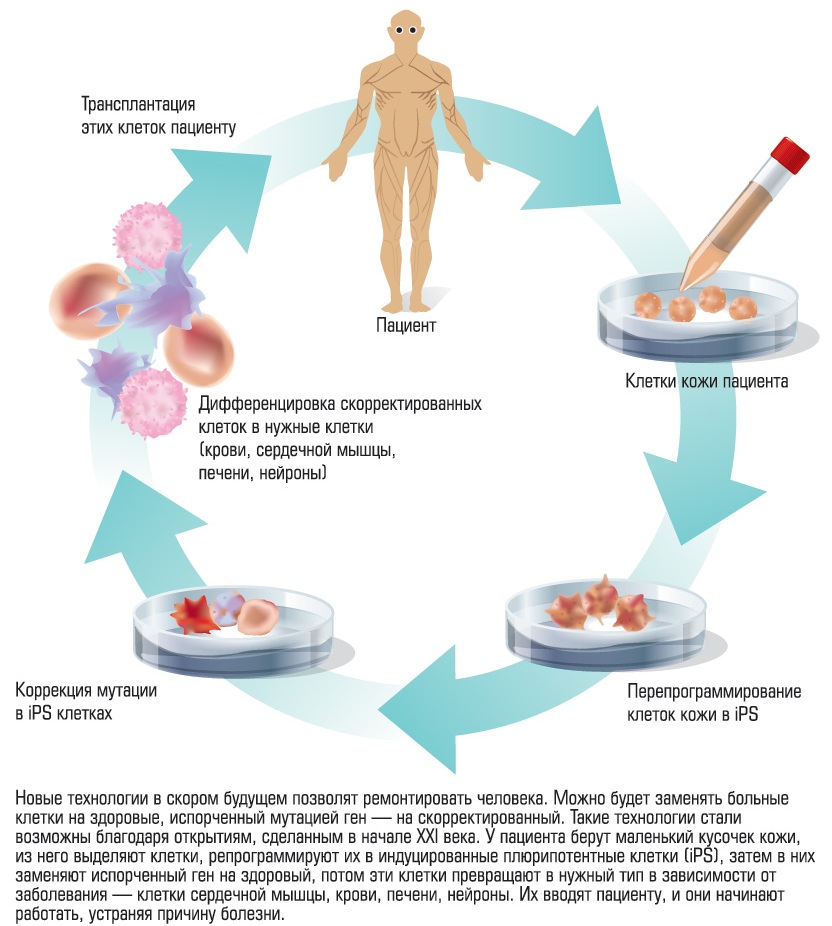 Совершенствование этой технологии не только снимет бесконечные этические и политические вопросы, оно также даст идеальное решение с научной точки зрения. Если вам нужны инсулоциты поджелудочной железы или ткани почки, — или даже целое новое сердце — чтобы избежать аутоиммунных реакций, вы, разумеется, предпочтете, чтобы они были сделаны с вашей собственной ДНК, а не с ДНК клеток зародышевой линии кого-то другого. И при этом методе используются ваши клетки кожи, которых у вас много, а не ваши редкие драгоценные стволовые клетки.