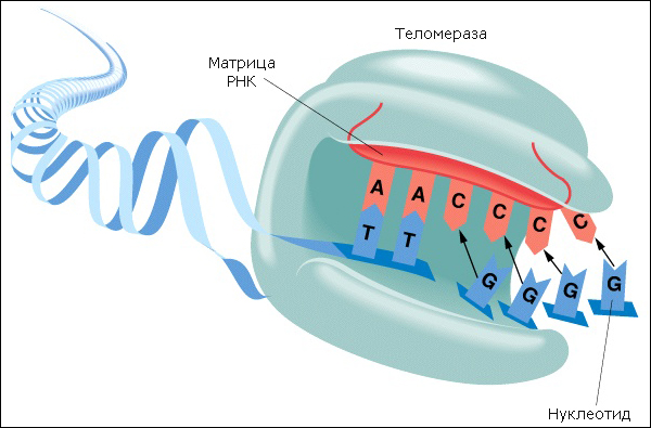 Терапевтическое клонирование относится к теломерам, которые представляют собой цепи повторяющегося кода на конце каждой нити ДНК. Такие повторяющиеся коды похожи на цепь бусин, в которой каждая «бусина» отделяется каждый раз, когда делится клетка. Это накладывает ограничение на количество раз, которое клетка может реплицироваться, — так называемый предел Хейфлика. Как только бусины ДНК выбывают, клетка запрограммирована погибнуть. Недавно было открыто, что фермент под названием теломераза, может удлинить звенья теломера, тем самым преодолеть лимит Хейфлика. Клетки зародышевой линии создают теломеразу и бессмертны. Раковые клетки также производят теломеразу, что позволяет им бесконечно делиться. Идентификация этого фермента дает возможность управлять этим процессом, и либо продлить жизнь здоровых клеток, либо прекратить существование патологических клеток, например раковых.