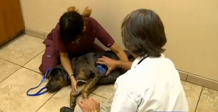 Запись ЭКГ у собаки с помощью iPhone и системы AliveCor (фото: technologyreview.com).