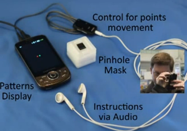 Система EyeNetra для определения остроты зрения с помощью смартфона (кадр из деморолика).
