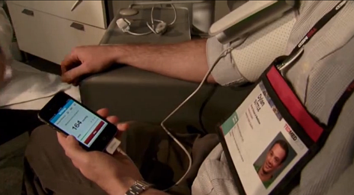 Измерение артериального давление с помощью приставки для смартфона (фото: Associated Press)