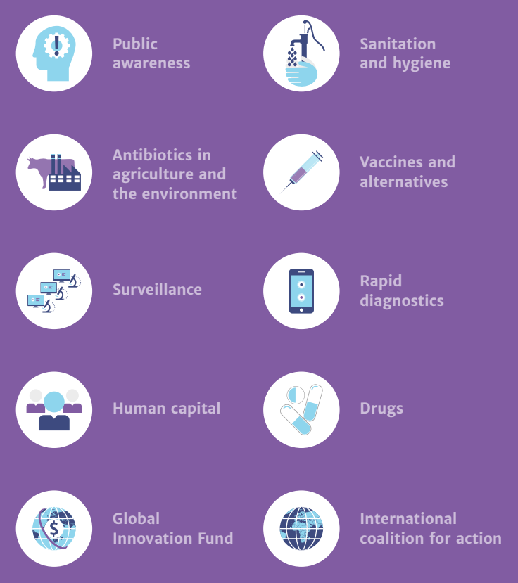 Чтобы предотвратить это, многие страны решили действовать — как по-отдельности, так и сообща. Это привело к созданию множества программ по борьбе с устойчивостью бактерий. Главные их постулаты сходятся: это улучшение диагностики инфекционных заболеваний и определения резистентных бактерий, изменение подхода к использованию антибиотиков в различных областях, включая животноводство, разработка новых лекарств и антимикробных вакцин, и, наконец, объединение государств, фармпромышленности, научного сообщества и простых людей для борьбы — фактически за выживание человечества.