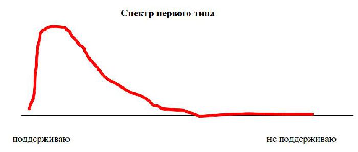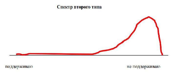 Если спектр имеет характерную форму первого типа, то очевидно, что власти можно быть спокойной. Ею все довольны и ее поддерживают.