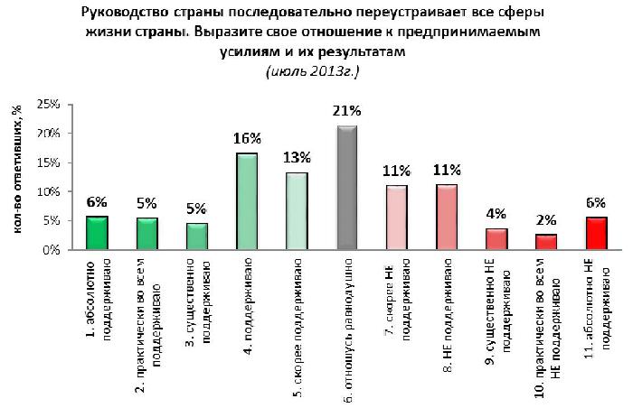 Очень важный результат заключается в том, что "заморозка" общества в России заканчивается. Дно, по всей видимости, достигнуто в конце лета 2013 года. Мы живем в последние месяцы относительной стабильности. Дальше пойдет разогрев общества как ответ на неуправляемость страны и беспомощность или глубокую ошибочность государственного управления, которая никак не претерпевает позитивных изменений.
