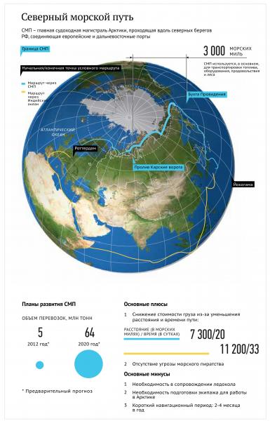 2.3.27. В связи с этим (и в условиях глобального потепления) стратегически важным для России является модернизация Северного морского пути для международного коммерческого использования. Его конкурентные преимущества заключаются, во-первых, в скорости доставки грузов. К примеру, сухогруз из Йокогамы в Роттердам по маршруту мимо мыса Доброй Надежды идет в среднем 29 дней, по маршруту через Суэцкий канал – 22 дня, а по Северному морскому пути – 15 дней. Во-вторых, активность сомалийских пиратов в Аденском заливе сделала крайне рискованным и дорогостоящим по страховым расходам использование маршрута через Суэцкий канал. Ситуация с безопасностью судоходства, скорее всего, будет усугубляться в связи с дальнейшей дестабилизацией Ближнего Востока после «арабской весны». Возрастающая активность нигерийских пиратов в Гвинейском заливе увеличивает эти риски и на маршруте, огибающем Африку. Севморпуть свободен от этих рисков и представляет собой