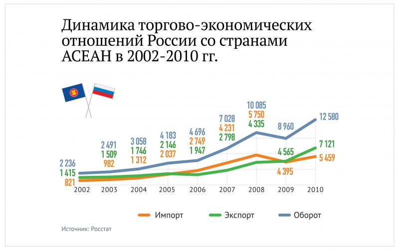 1.2.14. Номинальный ВВП 10 стран-членов АСЕАН за 2010 г. равнялся 1,87 трлн. долл. ВВП на душу населения – 3111 долл. Внешнеторговый оборот в 2010 г. составил 2,1 млрд. долл., а сальдо торгового баланса равнялось 72 млрд. долл. С 2004 по 2008 г. ВВП АСЕАН увеличился в 2 раза. Последствия кризиса выразились в незначительном снижении ВВП на 0,01% в 2009 г., однако в 2010 г. прирост ВВП превысил 8%. Население АСЕАН растет со скоростью 1,4% в год и составляет на текущий момент 599,6 млн. человек.