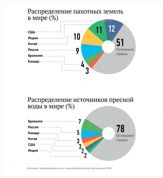 2.3.4. Огромные конкурентные преимущества в данных отраслях имеет Россия, обладающая обширными площадями пригодных для сельскохозяйственного использования земель (9% мировых пахотных земель) и большими запасами пресной воды (5% мировых ресурсов), при этом значительная часть этих ресурсов не вовлечена в хозяйственный