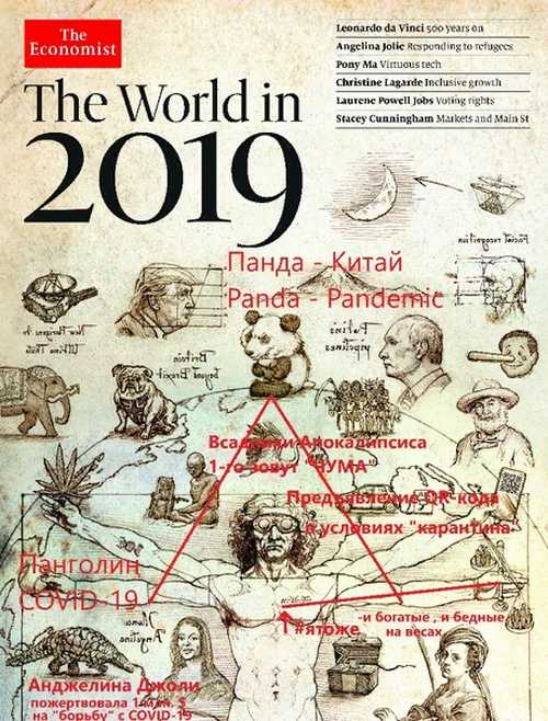 Согласно упорно распространяемому конспирологическому мифу, уже в конце 2018 года тайный "центр", где решаются важные мировые проблемы (а издание "Экономист" находится в ведении семейства Ротшильдов, и именно с ним связывают также деятельность Бильдербергского клуба) - знал о грядущей пандемии, и то, по каким сценариям она будет проходить.