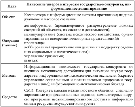 Можно выделить основные черты, характеризующие информационно-психологическую войну (табл. 1).