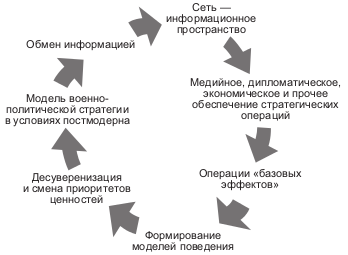 На рис.2 представлена схема общей логики сетевых войн. Из нее видно, как из обычного на первый взгляд процесса обмена информацией вытекает смена ценностных приоритетов.