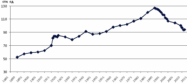 Как видно на графике, Россия постепенно обретала позитивный имидж, но со второй половины 90-х годов ХХ столетия происходит его очевидная утрата. Разрушительные, в первую очередь для социально-экономической сферы, процессы, начавшиеся со вступлением в перестроечный период, клеймение собственной истории, отказ от права на идеологию и от собственной идентичности, принятие либеральной Конституции, игнорирование национальных интересов и западноцентричная устремленность резко снизили рейтинги нашей страны в мире, уважение к ней упало. Приход к власти Владимира Путина в 2000-м году не затормозил развитие указанной тенденции, и на сегодняшний день ухудшение имиджа вновь продолжается (рис. 2).