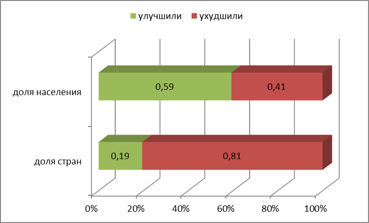 Если подсчитать долю населения стран, которые улучшили отношение в России, и долю тех, которые ухудшили его, то получается любопытный результат. Численность жителей Земли, улучшивших мнение о России в 2014 году, превышает численность ухудшивших это мнение в 1,4 раза. То есть тезис о том, что отношение к России критически ухудшилось, неверен (рис. 19).
