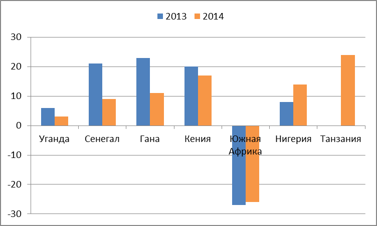 Рис. 16. Рейтинг России в странах Африки.