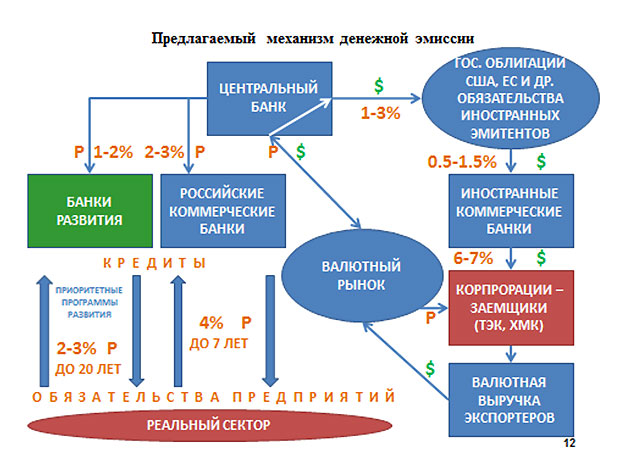 В настоящее время вследствие слабости внутренних механизмов кредитования российская экономика не может самостоятельно развиваться, следуя за внешним спросом на сырьё и иностранными инвесторами. Для формирования внутренних источников долгосрочного кредитования модернизации и развития экономики необходим переход к политике денежного предложения, обеспеченной внутренним спросом на деньги со стороны реального сектора экономики и государства, а также национальными сбережениями, как это делается в развитых и успешно развивающихся странах.