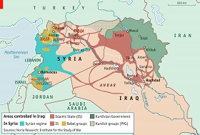 «Исламское государство» получило широкую известность летом 2014 г., когда боевики начали полномасштабное наступление на северные и западные районы Ирака. Радикалам в течение месяца удалось взять под свой контроль несколько крупных городов, включая Мосул и Тикрит, и подойти вплотную к Багдаду. В Сирии экстремисты «Исламского государства» оккупировали северную провинцию Рака, в центральном городе которой с одноименным названием размещается штаб-квартира организации.