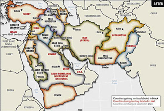 Всё это можно было бы списать на фантастические задумки сумасшедшего подполковника, если бы его работа не стала одним из основополагающих учебных пособий для образовательных заведений НАТО. И ещё десять лет назад, когда турецкие офицеры, находящиеся на переподготовке в Италии, увидели эти учебные пособия, разразился скандал. Всё это часть американской стратегии по созданию «Большого Ближнего Востока», о котором Кондолиза Райс упомянула в тот период, когда США в течение месяца блокировали обсуждение агрессии Израиля против Ливана в Совбезе ООН. Она тогда произнесла историческую фразу о том, что в огне израильской войны против терроризма в Ливане рождается новый Большой Ближний Восток.