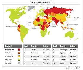 Индекс риска терроризма в странах, 2013